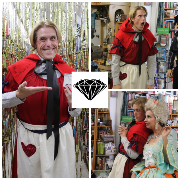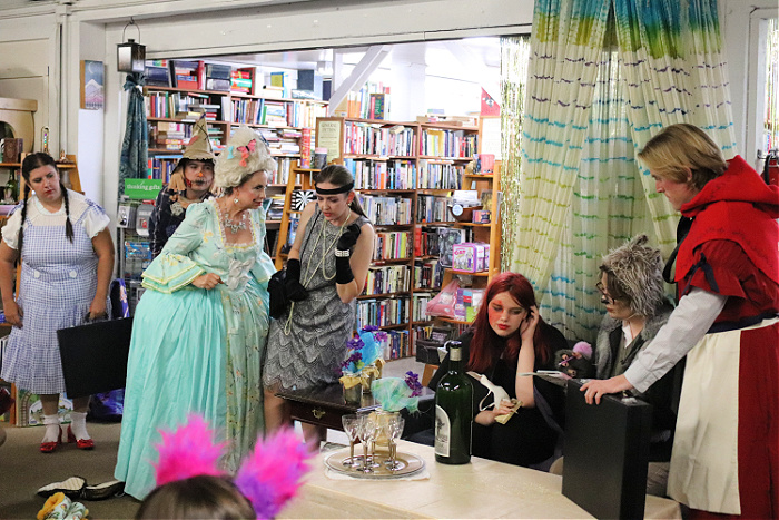 We returned to one of our favorite places in the world–Red Rock Books. In the spirit of the magic of word play, we crafted a puzzle all about playing with double meanings and double identities. A spiritual homage to Eat Cake in 2019, we brought back a group nefarious ne’er-so-wells working against each other for the sake of a common goal: the liberation of Gladys Honeypot’s hidden treasure. But they don’t know what the treasure is. Nothing like a bunch of ambitious boneheads trying to burgle a bookstore to birth a bevy of belly-laughs. And what better time than a costume party to hide your identity, dress yourself in ridiculous lies, and mask your real motives.