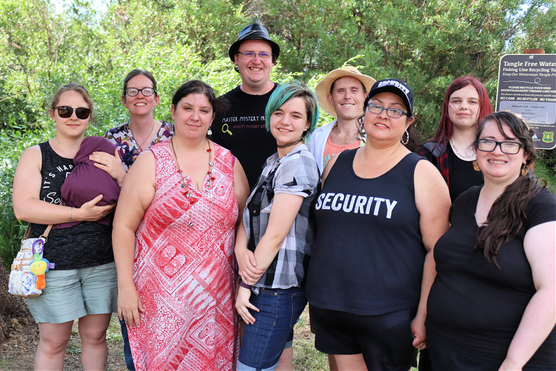 Unlucky Seven was designed to be a showcase of MMP’s talents to a growing clientele. After being invited to join the festival as a vendor from our friends at Ridge Writers, we decided the best way to show people what we do…was to show people what we do. It’s all very well and good to tell guests about what you do and show them the long stream of programs and look at pictures. But that can’t always capture the feeling of live theatre. The full picture, as it were. So we turned to our amazing artists, asked who would be available to make a one-day trip to Mammoth with us, and waited to see just what kind of interactive mystery we could create for our first festival production. And we managed to secure to help of eight performers to put on a specially-written show just for the book festival, a walkthrough Reader’s Theatre show that became Unlucky Seven.