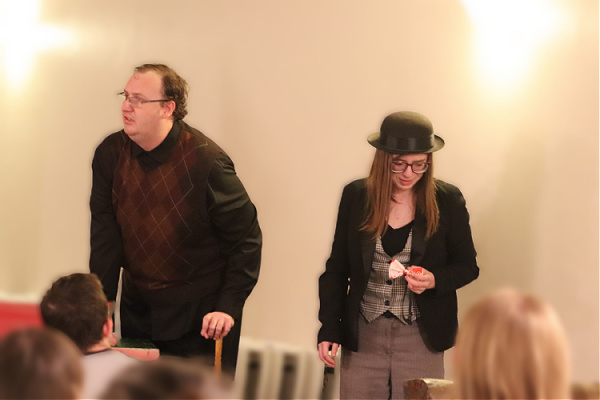 Crowds had lots of fun at How to Solve a Murder, particularly commending Janis’ skilled craftsmanship in writing the play. Some even believed the play was a professionally published project we bought rights for, a major compliment for a new playwright with her first produced work. We kept the story going throughout the night with guests signing our passenger manifest when they entered the venue, train whistles and timely announcements from the Conductor (who always stayed in character), period music provided by Jordan and Britta Covert of Moe’s Music, and even the passengers waiting at the “train station” at the start of the show. Lively, fun, and immersive, the play was a delight to perform. Jessica Weston, in her last theatrical review, especially praised Janis’ script and the aura it captured.