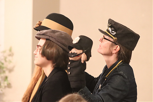 Antics such as searching each others’ compartments and luggage, hiding bodies, eavesdropping with stethoscopes, and lying about lobster dinners abound. Audiences cackled as Reeves tries on theatre costumes in a suitcase to show off his skills as an actor…to Brewster’s dismay. Eyes rolled as Reeves insisted on his mighty brainpower, only to be outwitted by his fellow travelers. But the lingering question of Dr. Rutherford’s murder remained? Who stabbed him seven times in the back? How did they enter the hospital unnoticed? What motive could there be? And why won’t anyone tell Reeves to stop trying to solve the murder? When fire breaks out and all heck breaks loose, How to Solve a Murder makes Murder on the Orient Express look like a pleasure trip. And let’s not forget our puppet Chief Constable coming to regain order. All to the hoots, howls, and cheers of our audience. Closing night was especially wonderful with the audience in full riotous laughter at the madness on the train. This was certainly one journey to remember.