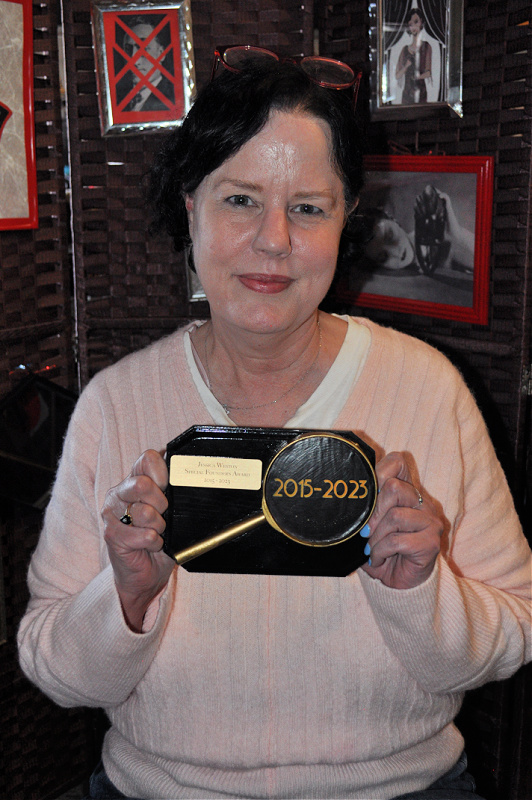 An extra surprise came upon us at the close of the year, accounting for the delay in this production’s Post Mortem. Jessica Weston, a longtime reporter and theatrical critic for Ridgecrest’s The Daily Independent has now retired from journalistic writing for a new career. She has been a vocal supporter of MMP since Goodbye Hollywood, our second ever show back in 2015. She has supported the arts community as a whole, frequently writing about the performances from many companies in the area. No matter where we went, Jessica helped us bring audience members and a growing collection of genius artists into the world of theatre. We cannot overstate how vital she was to our community. As such, on New Year’s Day 2023, we at Master Mystery Productions created a Special Founder’s Award to honor Jessica Weston for all her work, love, and support not just for MMP but for the arts community as a whole from 2015 to 2023. She is the first winner of this kind of special award, and we couldn’t think of a more deserving champion. Congratulations, Jessica! We love you so much. Thank you for everything.