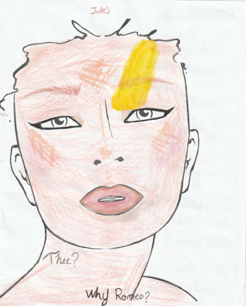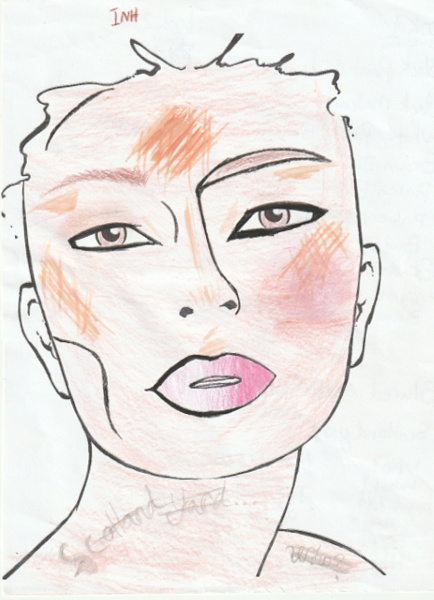 Journey Curran, who plays Jane Eyre, doubles as the Makeup Designer for Shelf Life, and she was inspired to turn these people into paper through cosmetic means. In the script, we have many fun allusions to the characters being mere paper-and-ink. Highlighter is found on a character from a play whose lines have been highlighted by an actor. The characters are annotated with scribbled notes from readers and students. Journey also used makeup to simulate the concept that the characters’ “skin” is really paper. For added detail, Journey also learned how to create a vampire bite for a certain part-vampire from Bram Stoker’s Dracula.