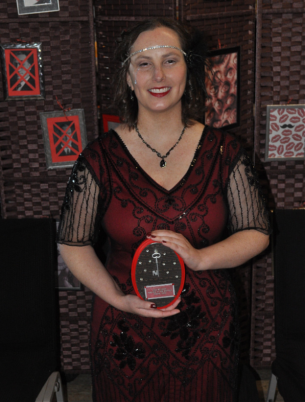 Following the Skeleton Key, we presented the coveted Diamond Mask Awards for Excellence in Performance. Voted by audiences, guests select their nominees for the award based on the performances they liked best. The actors with the most votes win. Six people won the award for Murder at the Red Fez, three for each cast. Congratulations to Libby Mitchell, Elaine Stewart, Elise Bechtel, Olivia Holm, Devanne Fredette, and Cat Kreidt for your Diamond Mask-winning performances!