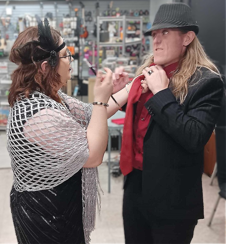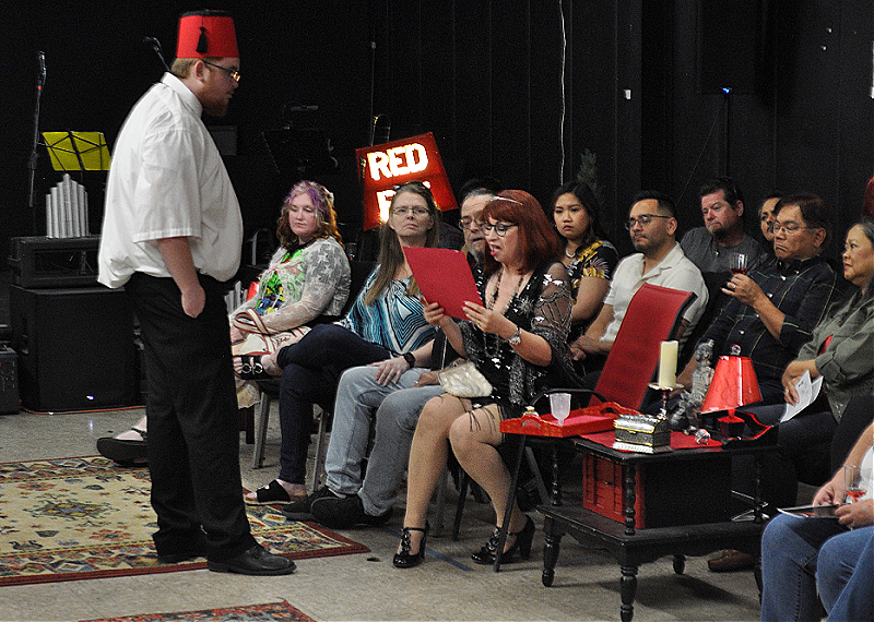 A dozen years ago, we got a special request before “we” even became a thing. Bring the glitz, glamour, and gangsters of the 1920’s to a private party in Bakersfield. Little did the Red Hat Ladies or the rest of us know that that unassuming little trunk show performed in someone’s living room would blossom into a future theatrical experience with a complimentary drink, live jazz music, an immersive set, and talented actors trading comebacks and accusations after a notorious gangster is murdered. Humble beginnings have grown into glamorous futures as our first Master Mystery Production got into its best glad rags to play our 37th production we call Murder at the Red Fez.