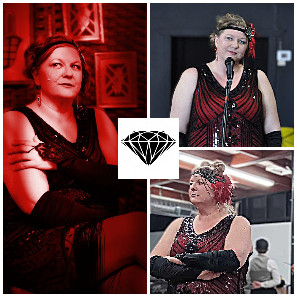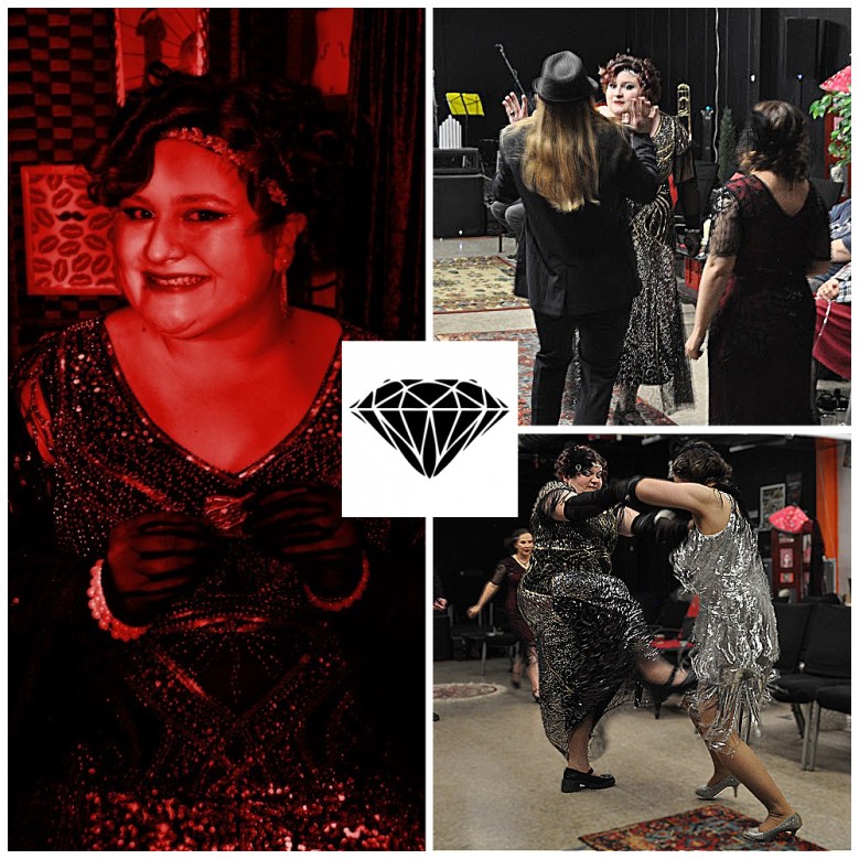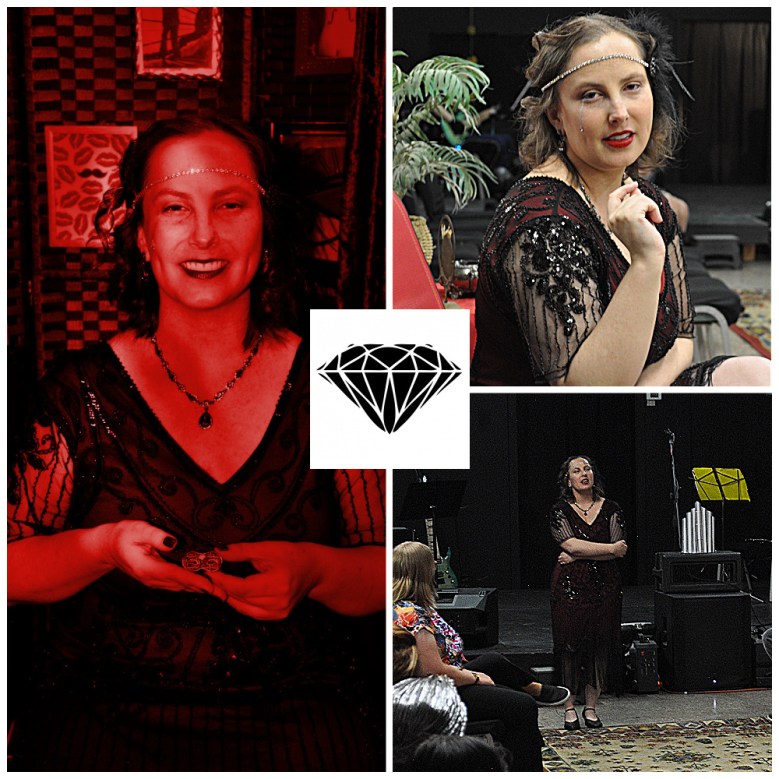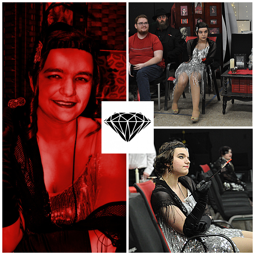 Diamond LaPore opened the show with a beautiful jazz number highlighting her inner tormented past. On her cheek, a diamond tear falls. What is she remembering as she sings? In the shadows hide two figures–Mickey the Muckler and his moll, Scarlet O’Halloran. What are they talking about? Some special gift for Scarlet? Mickey’s low profile? As the music fades, so do our mysterious victims. And the tension revs into high gear. What information does flapper heiress Millie Carraway have on the bouncer? Why is the famous heiress Velma Sloane hide from the paparazzi’s flashbulb? Does Elizabeth Buchanan know someone at the club? But before the ice melts in the cocktails, Mickey gets iced by a hatpin to the back of his head. And Patrick, his brother and manager, is in a fury. He orders a lockdown on the speakeasy until he finds the one responsible for the murder.
