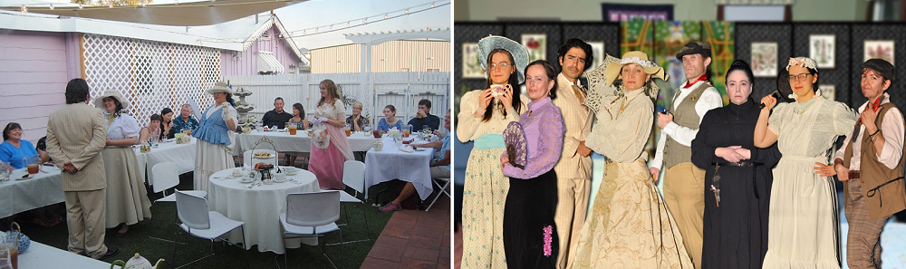 Costuming a period show is a massive undertaking. Often involving yards upon yards of fabric and trim, long hours of labor and research, and more pins than a bowling alley to hold it all together. When it comes time to revive a show, it’s wise for time and budget to try and reuse some of those original costumes, making tweaks to suit different actors, characters, or new story details. Reviving The Last Garden Party, our beloved Victorian mystery tea from 2016, meant combing through the costume archive to unearth custom-crafted treasures. But here’s a secret: Not all the costume pieces we recycled came from 2016’s show. Over ten years, we have amassed quite a collection of costumes and amazing, talented artists with archives of their own. So let’s step into the MMP atelier once again to learn about giving old costume pieces a second chance in this latest behind-the-scenes blog post!