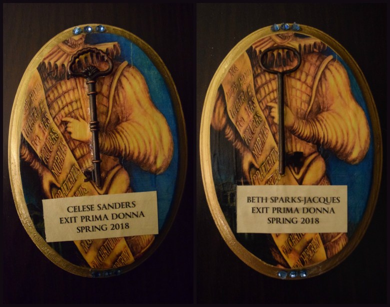 Exit Prima Donna was a unique situation. A first Skeleton Key was awarded not long after auditions to an individual who had went above and beyond in the creation and booking of the show, but sadly moved before she could be a part of the production process. A second Key was awarded to a member of the production team per tradition.