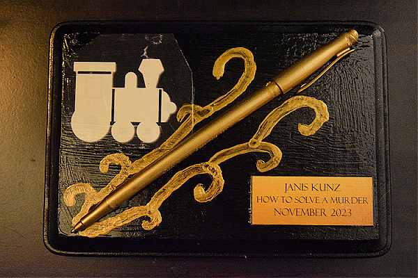Master Mystery Productions creates a series of awards to honor excellence in production, performance, writing, and service. We extend our endless gratitude by honoring our many award winners–past and present. We present them after curtain call on closing night. Under each award is a description of it and a list of our winners. Congratulations, everyone, on your fantastic achievements for Master Mystery Productions!