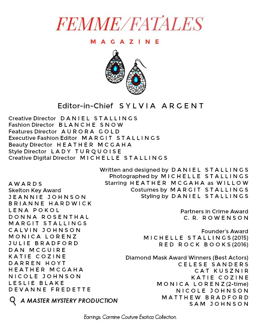 The sixteenth Master Mystery Production, FEMME FATALES (October 2017), reunited us with our first ever clients–The Red Hat Ladies of Bakersfield–for an interactive murder mystery inspired by the killer world of couture fashion.
