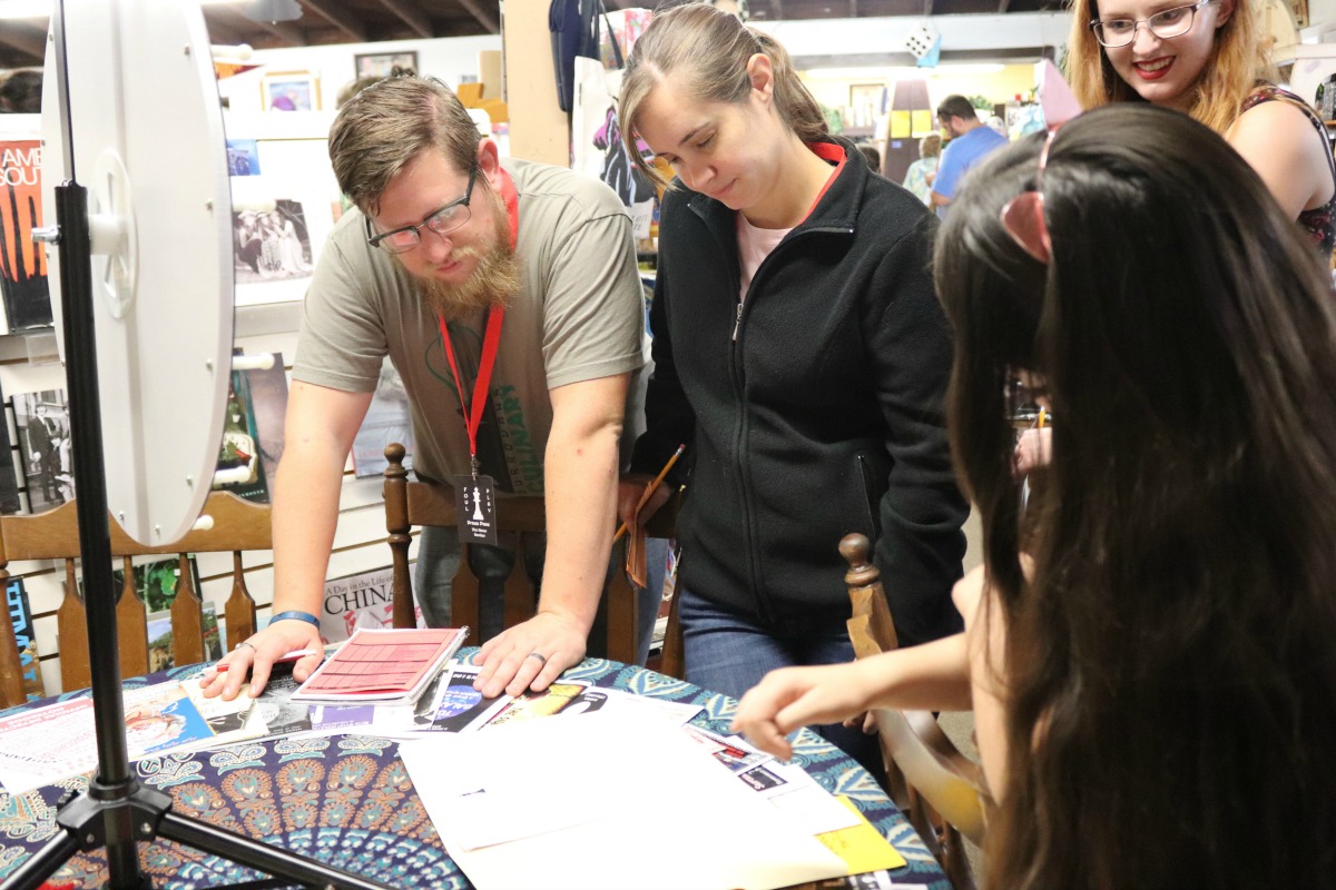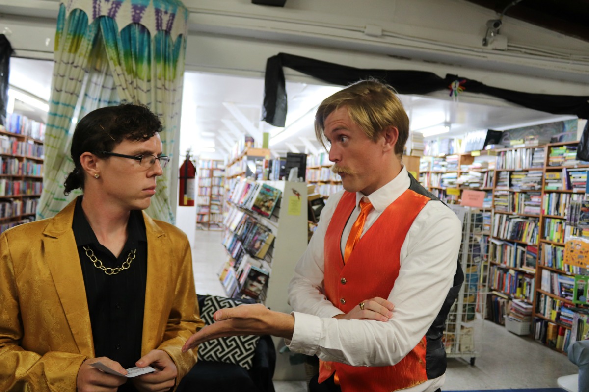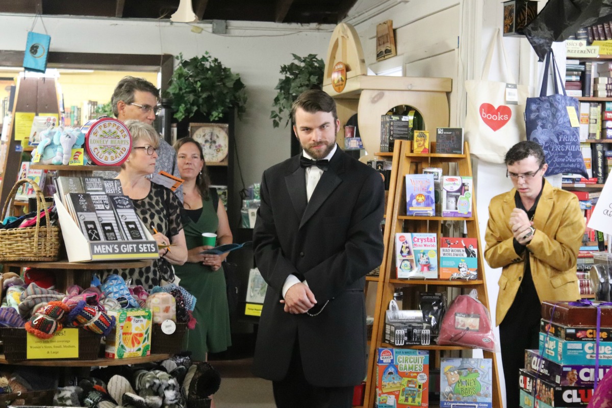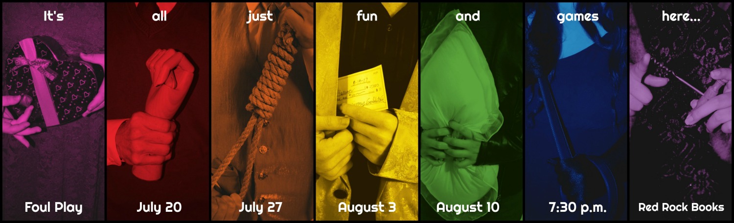 Our 23rd Master Mystery Production, FOUL PLAY (Summer 2019) is a life-sized murder mystery board game inspired by the game, CLUE. Seven suspects play a deadly game of cat-and-mouse trying to put a mysterious host named King in check. But not everyone is playing a fair game. Was it Dr. Redmond in Cookbooks with the Poisoned Chocolates? Or Iris Royale in the Biographies with the Corkscrew? That’s for you to uncover. This is the first Master Mystery Production to offer to separate solutions to the crime.