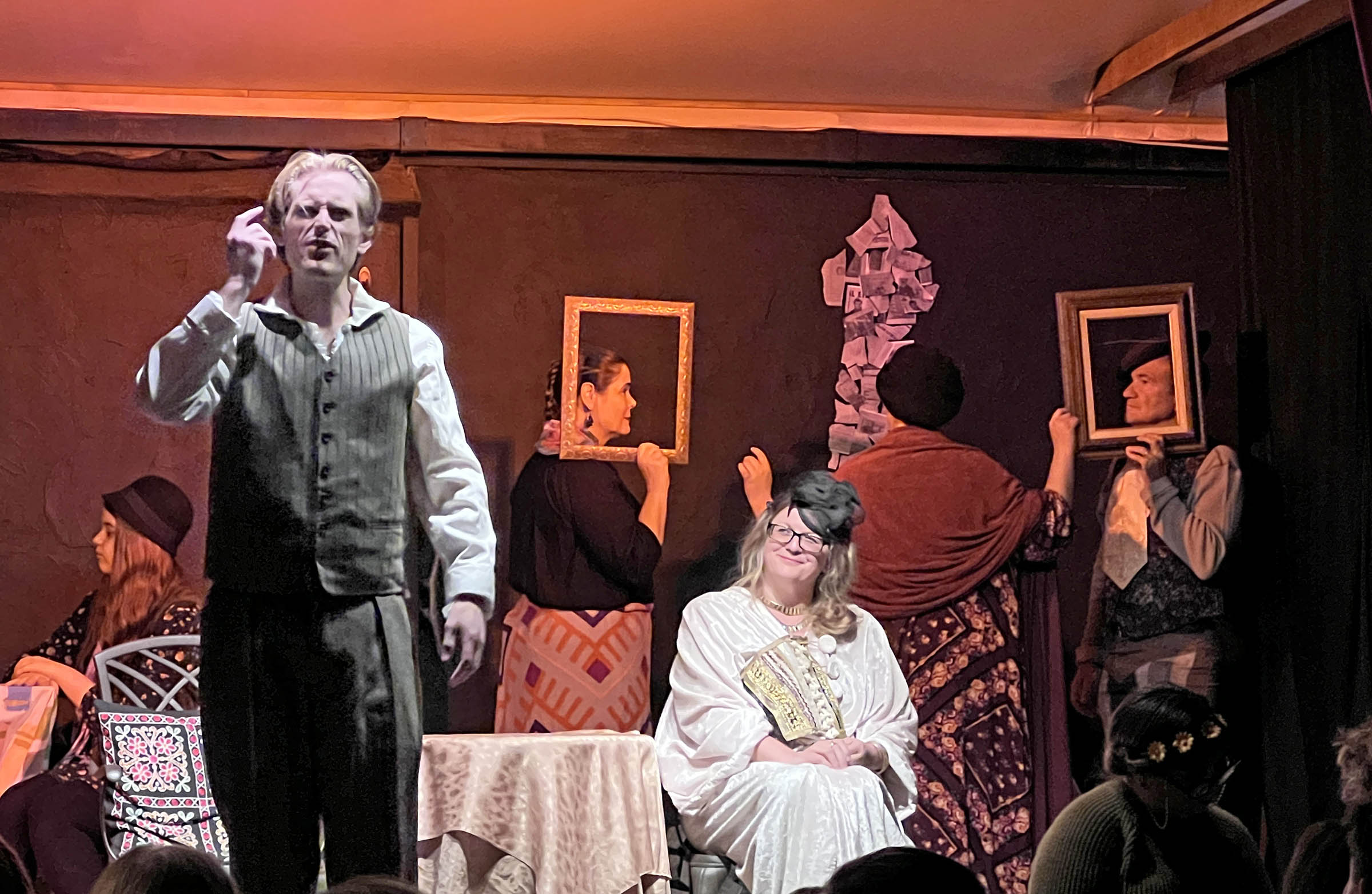 TÊTE-À-TÊTE (Fall 2022) is the 32nd Master Mystery Production where the audience gets a Surreal look into the murder mystery of a wealthy patron of the arts and the starving bohemian artists who try to solve the mystery themselves.