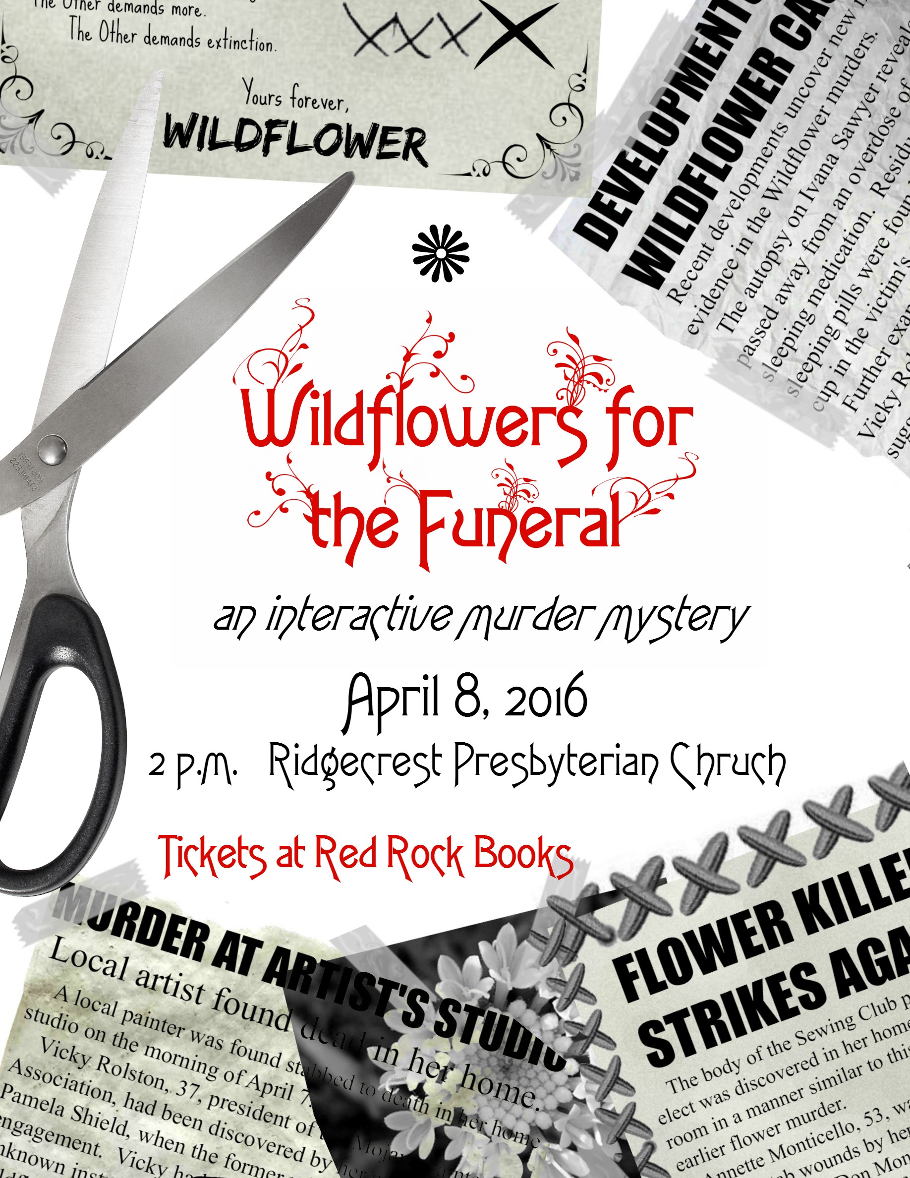 WILDFLOWERS FOR THE FUNERAL (April 2016) is the seventh production from MMP, an interactive murder mystery where the audience formed teams based on Mojave Desert wildflowers to study a serial killer’s scrapbook and find out not only who the killer is…but also save the life of her next victim.